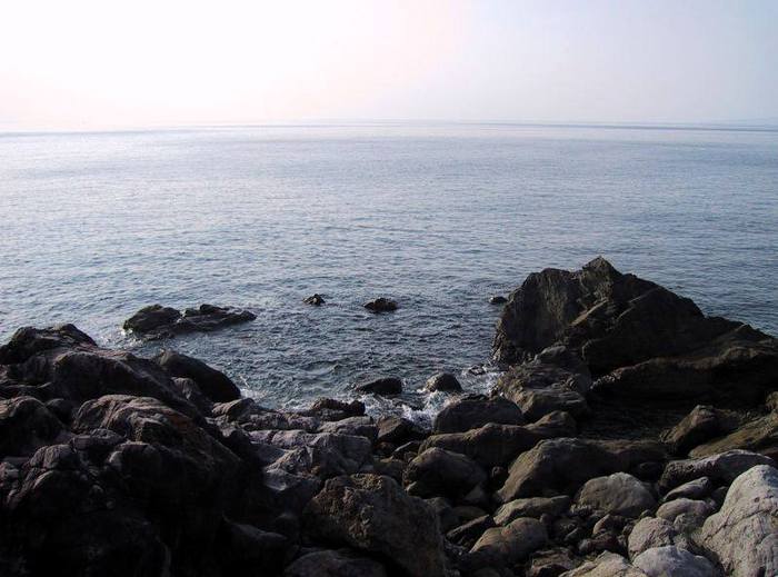 ずいぶんとかわっちゅうけど・・。今 港みたいになっちゅうここには 昔はお城があったがやとー・・。そういう話をむかし きいたでー・・。そうな がー・・。よしよし靴をきちんとはかんと岩場じゃきにけがしなよー・・。へーい。まじめにやらんと 晩飯抜きでー。それはこまる・・。