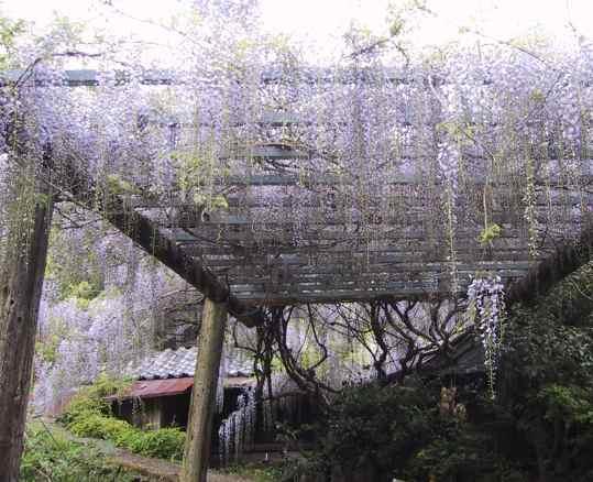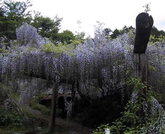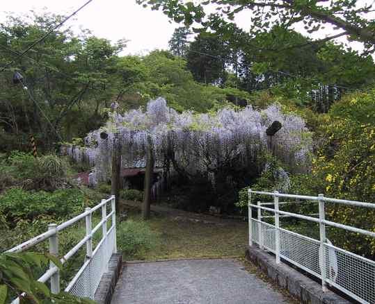 公民館前の三差路の橋の下にはちいさな「どんど」(滝)がある。翡翠色した淵のよどみをさらに暗くしている杉の古木に藤が絡まり空を覆っていた。これが有名な「大蛇藤」である。毎年開花の季節にあわせて「藤祭り」が行われている。